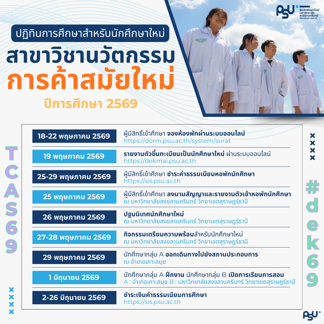 ประกาศ การเตรียมตัวของนักศึกษาใหม่ ระดับปริญญาตรี วิทยาเขตสุราษฎร์ธานี ประจำปีการศึกษา 2568